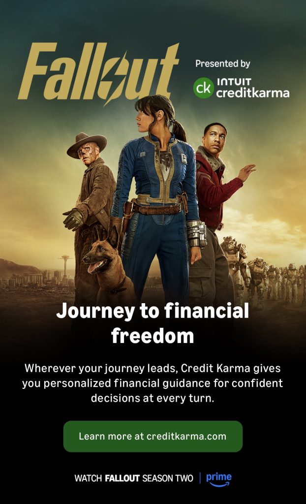 - Intuit credit karma with Amazon / Fallout. Integrated natively into the Amazon app.